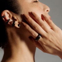 漆黒のアフリカン・ブラックウッドにsilver925の象嵌細工を施した、星空をイメージしたイヤーカフです。闇夜に浮かび上がる星の輝きを思わせるデザインで、星の輝きで耳元を華やかに飾ります。また、象嵌細工は職人の手によって丁寧に作り込まれた、細やかで繊細な仕上がりです。この星空リングは手作りのため、一点一点異なる個性があります。それぞれが持つ違いを楽しんでいただければと思います。